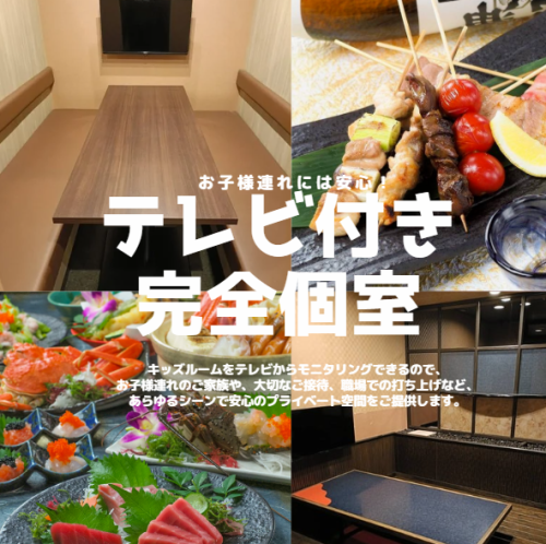 【모니터링 가능!키즈 룸】전석 완전 개인실의 저희 가게에서는, 좌석의 모니터로부터 키즈 룸의 모습을 리얼타임으로 확인할 수 있는 기능을 완비!안심하고 식사와 술을 즐길 수 있습니다♪ 가족 동반이나 마마회 등, 다양한 모임에 최적입니다◎